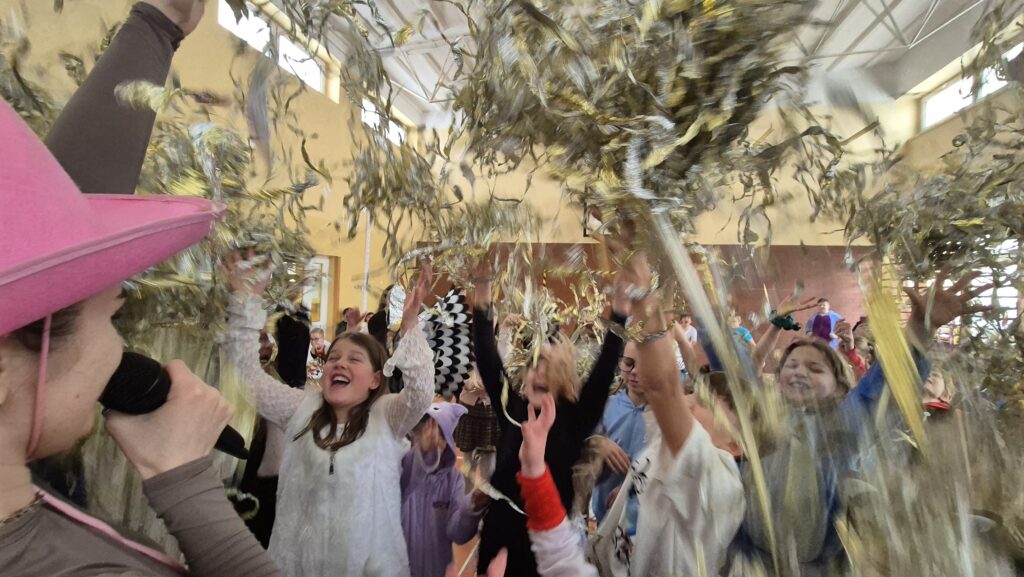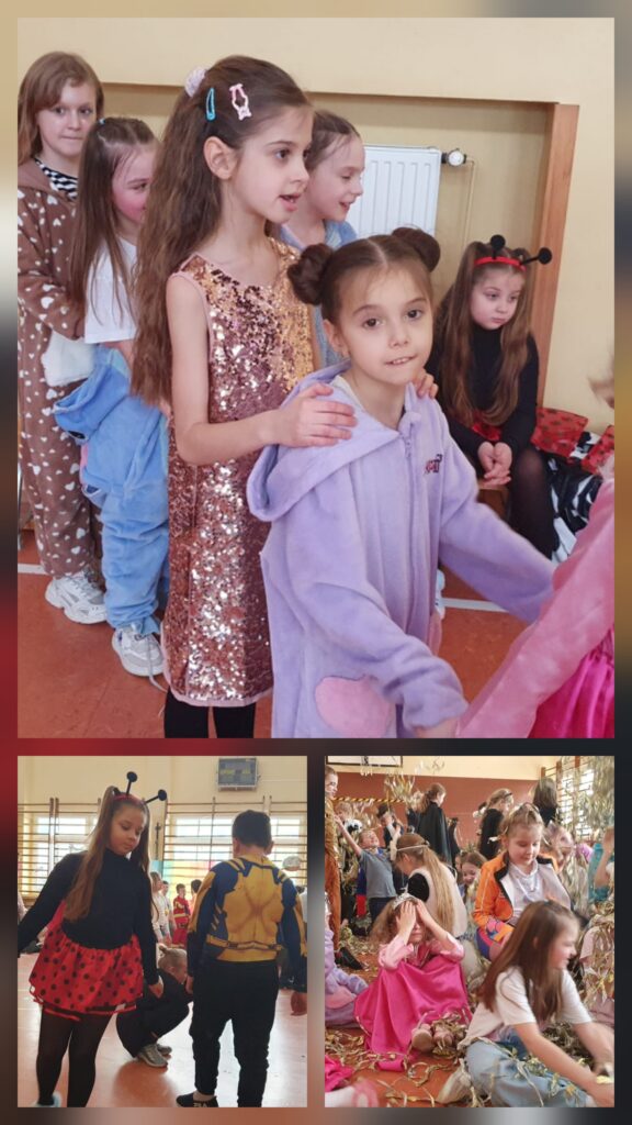 W środę 11 lutego w naszej szkole odbył się długo wyczekiwany balik karnawałowy dla uczniów klas 1–3. Tego dnia sala gimnastyczna zamieniły się w prawdziwą krainę zabawy, kolorów i uśmiechu.