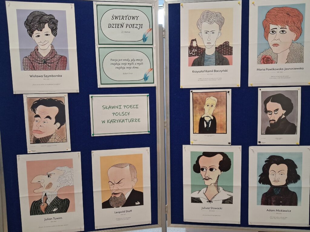 obejrzeć wystawę karykatur najsławniejszych polskich poetów, a podczas przerw także