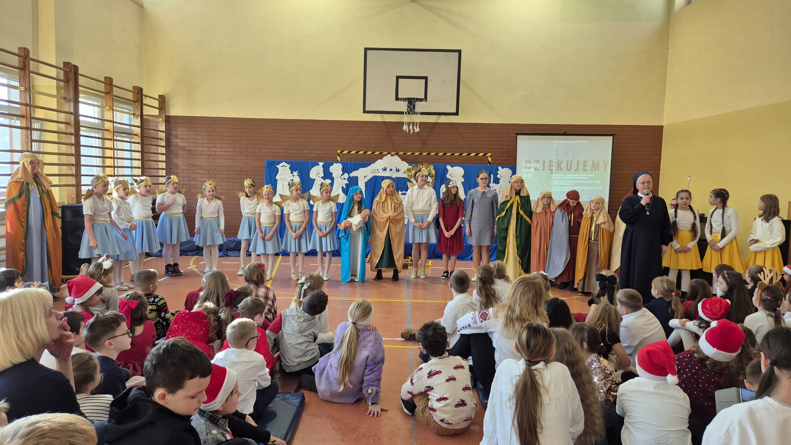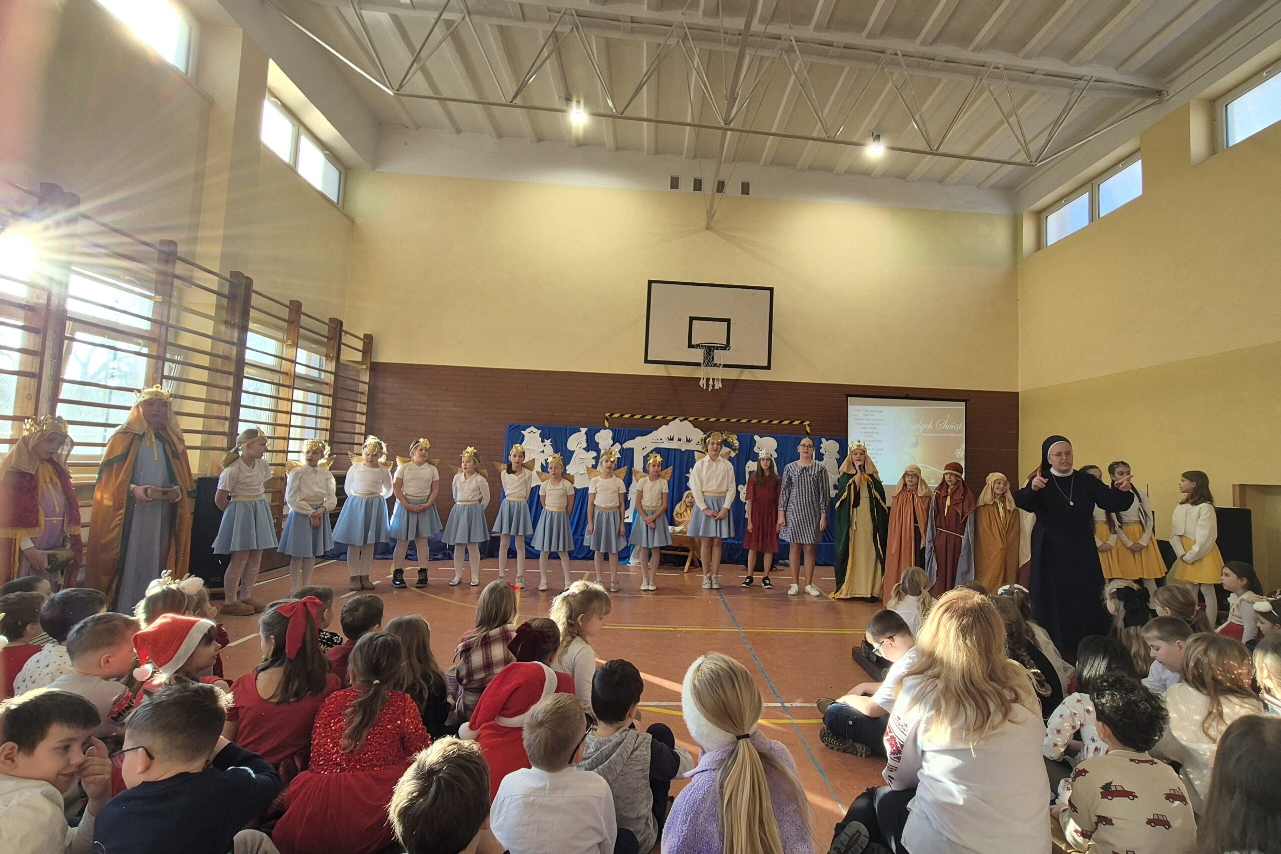Dziś w naszej szkole odbyły się wyjątkowe jasełka, przygotowane z ogromnym sercem przez Siostrę Halinę. Młodzi aktorzy i piosenkarze zachwycili publiczność swoim talentem, zaangażowaniem i autentycznymi emocjami. Ich występy wprowadziły wszystkich w prawdziwie świąteczny nastrój, pełen radości, wzruszeń i refleksji.
